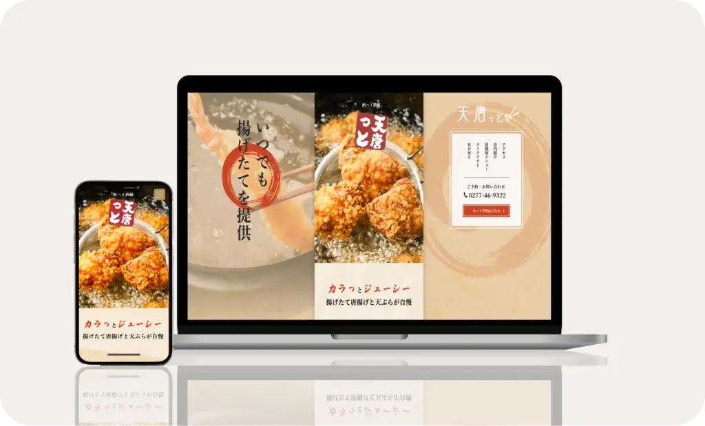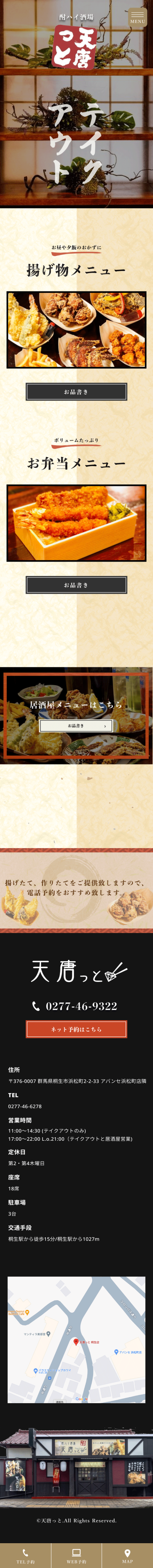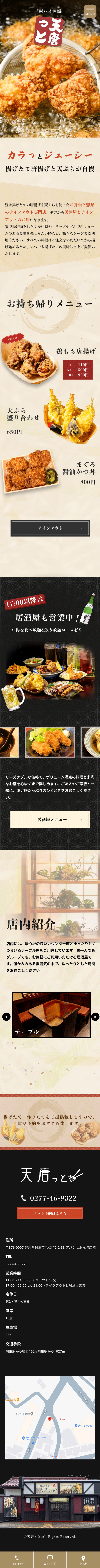 テイクアウトがメインのため、お店紹介の後すぐにメニューへアクセスできる設計にしました。全ページに居酒屋リンクを設け、居酒屋の認知アップも意識。おすすめの組み合わせや人気メニューを分けて紹介し、選びやすさを工夫しています。スマホ閲覧を想定したモバイルファーストのデザインで、配色は料理が美味しそうに見える暖色系を使用しました。